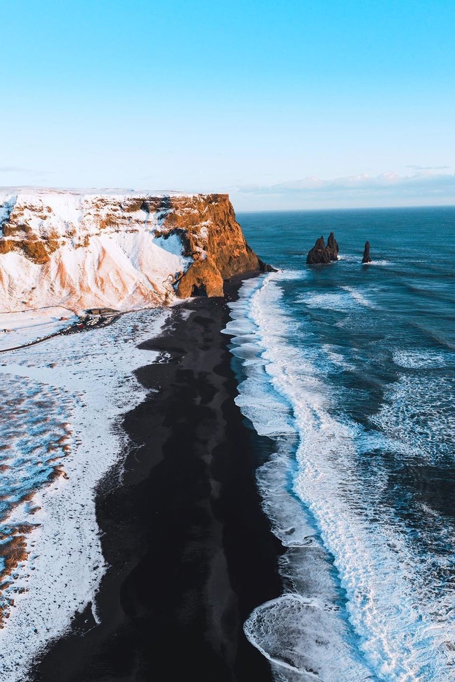 Selain itu, pantai hitam Reynisfjara Beach juga wajib masuk dalam daftar perjalanan Anda. Pantai ini terkenal dengan pasir hitam vulkaniknya serta formasi batu basal yang unik, menciptakan suasana dramatis yang sangat fotogenik.