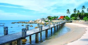 Kuliner: Restoran di sekitar pantai menyajikan hidangan laut segar khas Bangka, termasuk lempah kuning yang sangat melegenda.