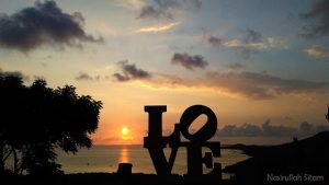 Sore hari, Mas Jaka mendaki Bukit Love untuk menyaksikan matahari terbenam. Panorama laut luas dengan langit berwarna jingga membuatnya takjub.