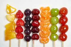 • Celupkan buah dengan cepat agar lapisan gula tipis dan merata.